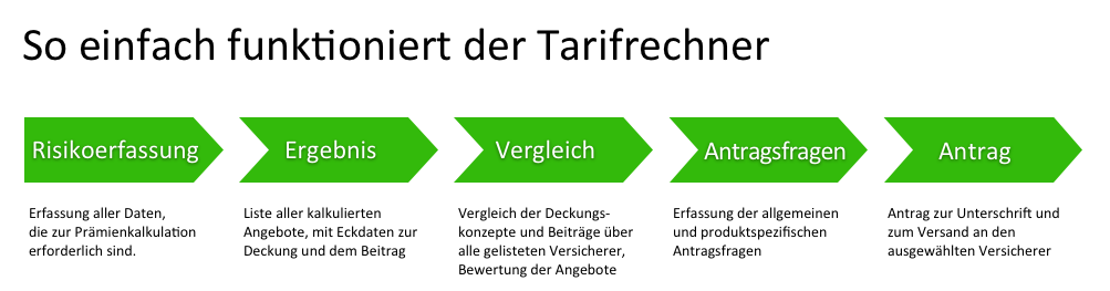 Die Angebote sind nach kurzer Berechnung sofort verfügbar und werden im Vergleich übersichtlich dargestellt. Natürlich können Sie auch direkt online einen Vertrag mit dem Versicherer abschließen. So bleibt Ihnen mehr Zeit für Vertrieb und Kundenberatung.